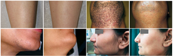 Des repousses paradoxales (stimulation de la pilosité à proximité des zones traitées) sont parfois observées, notamment chez l’homme au niveau du dos et du torse et chez la femme au niveau du visage.