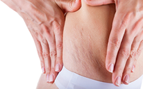 Depuis quelques années, les Lasers fractionnés ablatifs (CO2 Fractionné) et surtout non ablatifs (Fraxel Dual) se sont imposés comme les techniques les plus efficaces. Ces lasers agissent en réactivant les fibres élastiques et les fibres collagènes et provoquent une néocollagénèse importante qui permet le remplacement du tissu « malade » par un tissu « plus sain ». Ces techniques ne font pas totalement disparaître les vergetures mais elles permettent une amélioration importante. Les rougeurs disparaissent. L’aspect blanchâtre, creusé, fripé va s’atténuer. La peau retrouve son élasticité. On peut espérer au moins 50 % d’amélioration après 2 à 4 séances. Le laser Fraxel Dual est actuellement la technique la plus efficace grâce à ses deux longueurs d’onde, il traite les parties profondes et superficielles des vergetures. Il peut être utilisé sur n’importe quel endroit du corps sans provoquer une délimitation visible par rapport aux zones non traitées. Il peut être aussi utilisé sur tout type de peau, même les peaux noires.